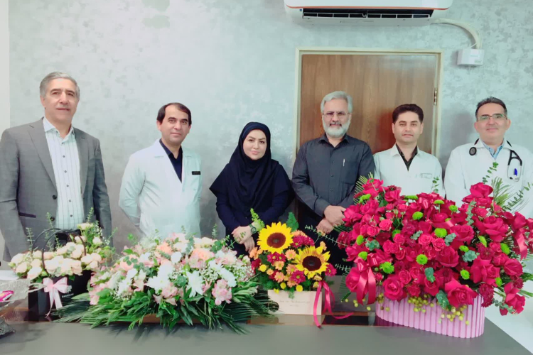 دکتر مجید حسین زاده رئیس مرکـــز آموزشی درمانی امین با حضور در دفتر پرستاری مرکز، ضمن قدردانی از زحمات و مدیریت ارزشمند خانم مستوفی در حوزه پرستاری، با اهدای سبد گل از تلاش های ایشان تجلیل کرد.
