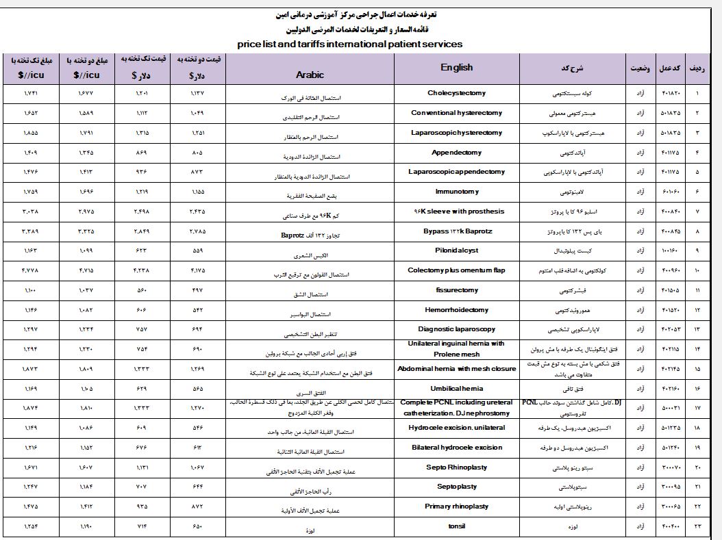 Price list and tariffs for international patient services Price list and tariffs for international patient services
